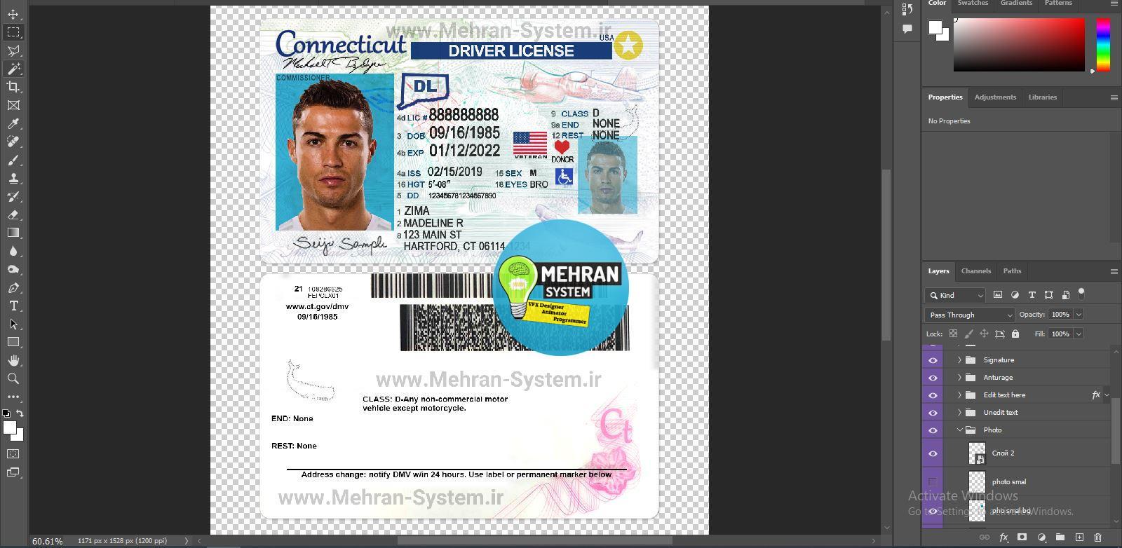 - فایل PSD لایه باز گواهینامه رانندگی ایالت Connecticut آمریکا